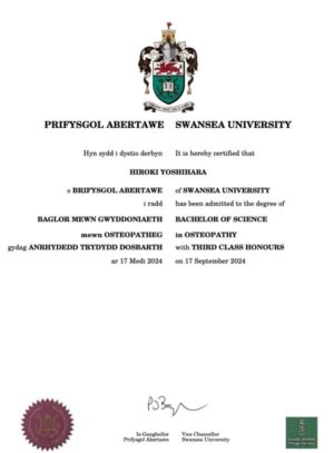院長の吉原は20年以上の臨床経験と英国スウォンジー大学でオステオパシー理学士号を取得した、国際資格を持つオステオパスです。産後のデリケートなお体のケアも安心してお任せください。